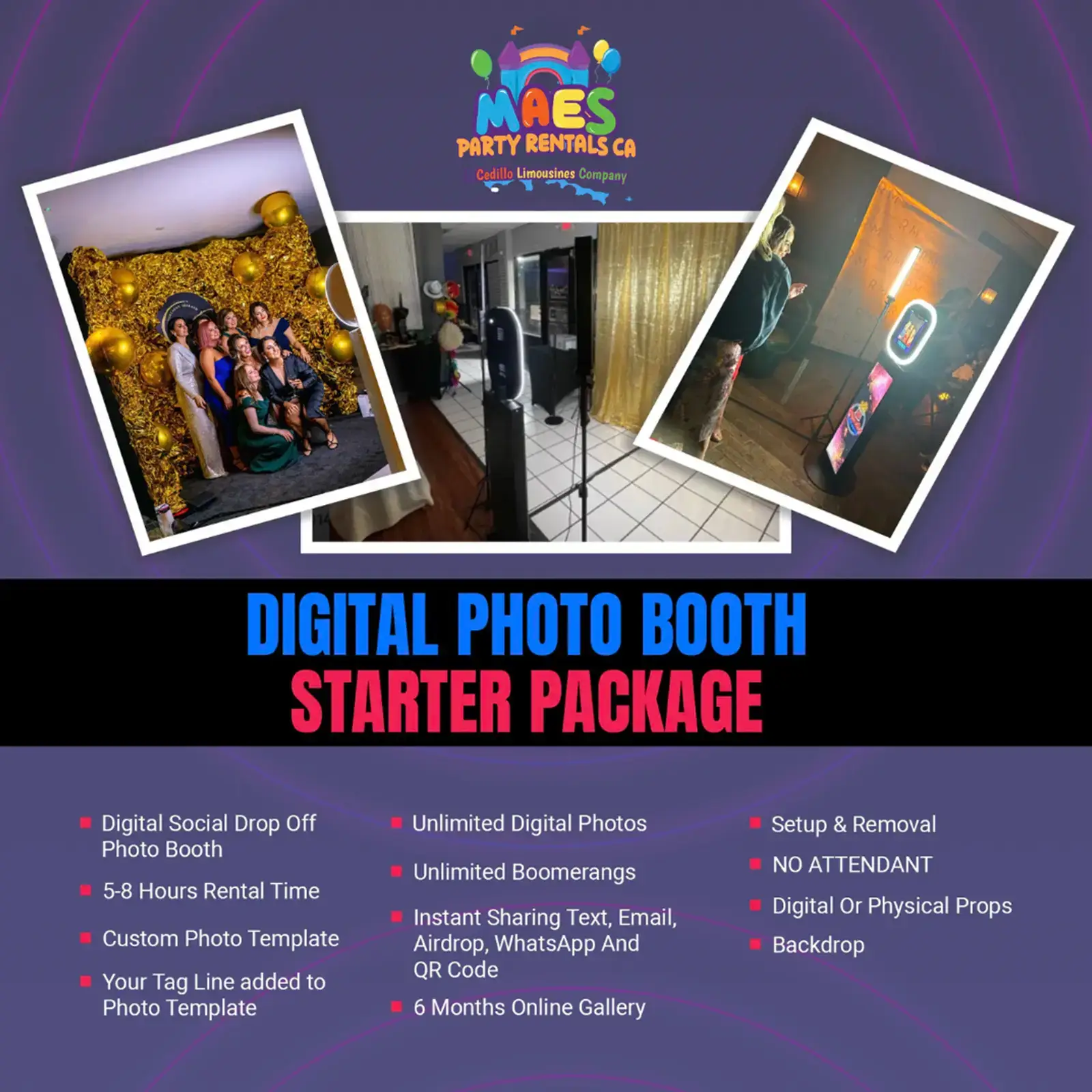 At MAES Party Rentals, we understand the importance of capturing those special moments at any celebration. That’s why we offer professional Photo Booth Services designed to elevate your event and create lasting memories for you and your guests.